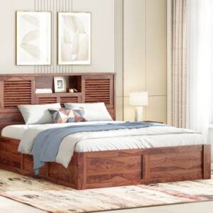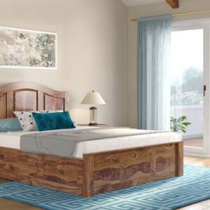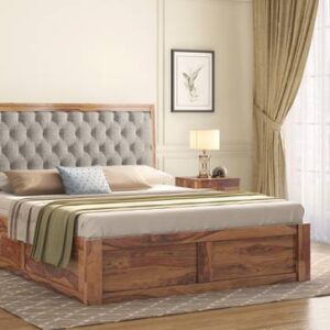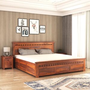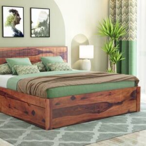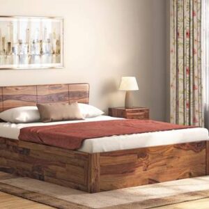 Gendrin Sheesham Wood King Size Bed Hydraulic Storage