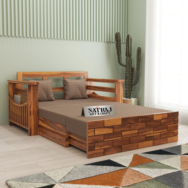 Upgrade your home with the Drathian Sheesham Wood Sofa Cum Bed – where comfort meets timeless craftsmanship!
