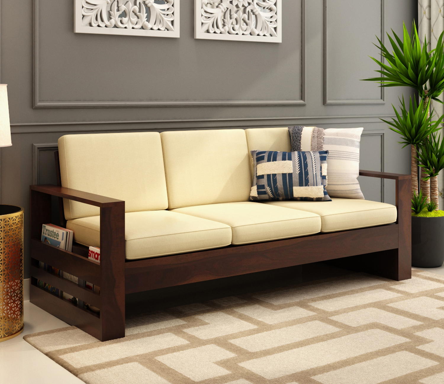 Ivandral 3 Seater Wooden Sofa Set – Elegant & Sturdy Seating for Your Living Space