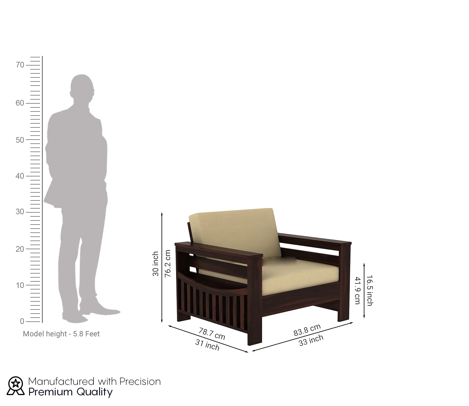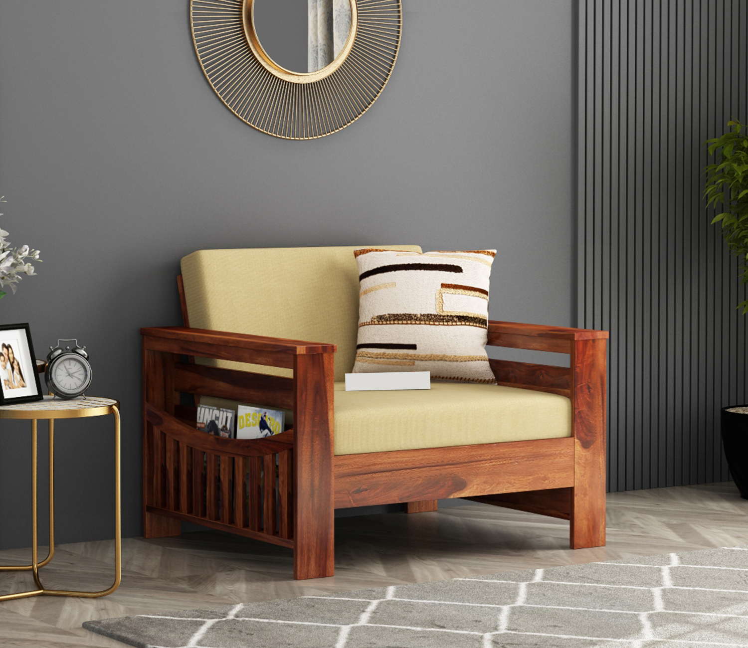 Jenthoris 1 Seater Wooden Sofa Set – Elegant & Sturdy Seating for Your Living Space