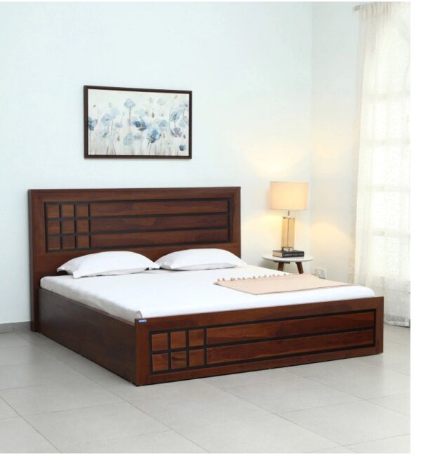 Morsithis Sheesham Wood Queen Size Bed – Elegant & Space-Saving Design