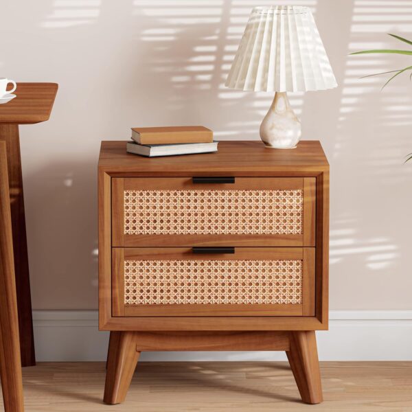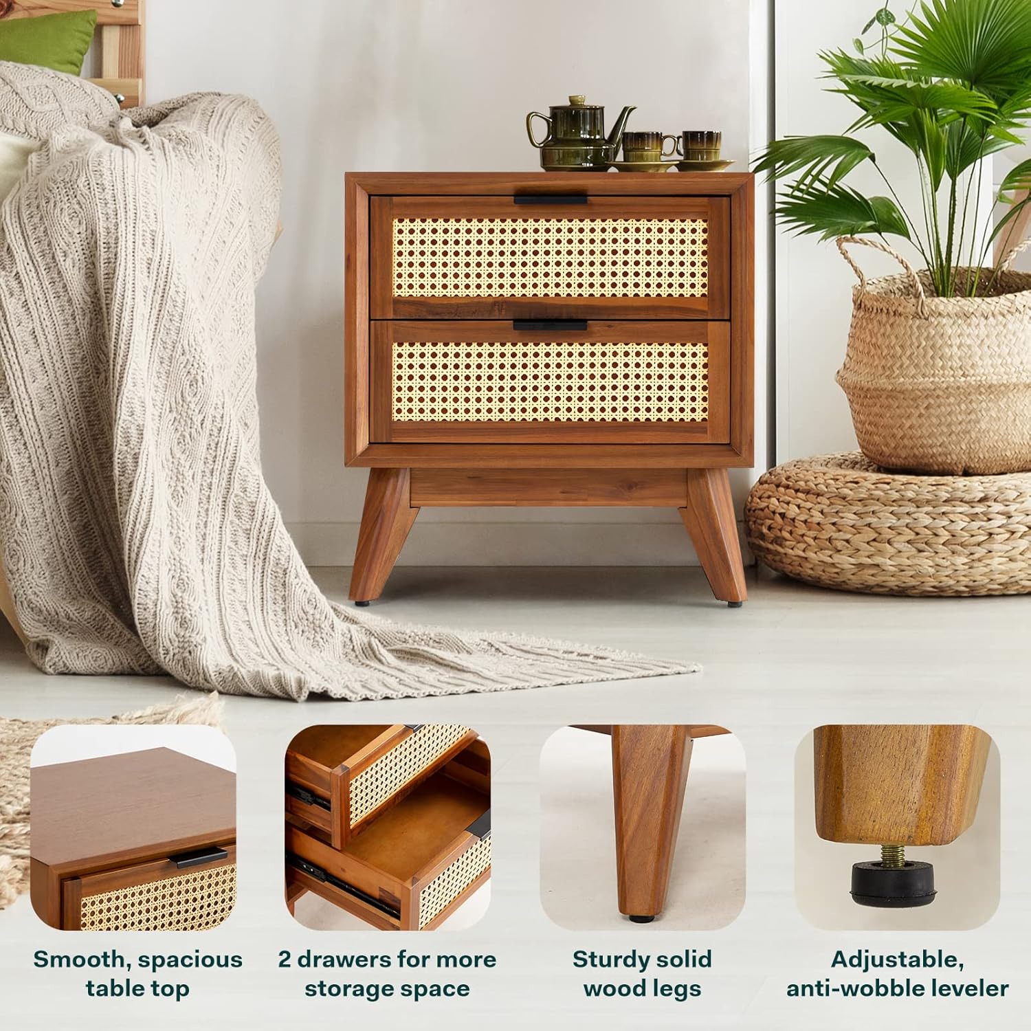 NATRAJ ART & CRAFT Jasper Deluxe Solid Wood Rattan Nightstand – Fully Assembled