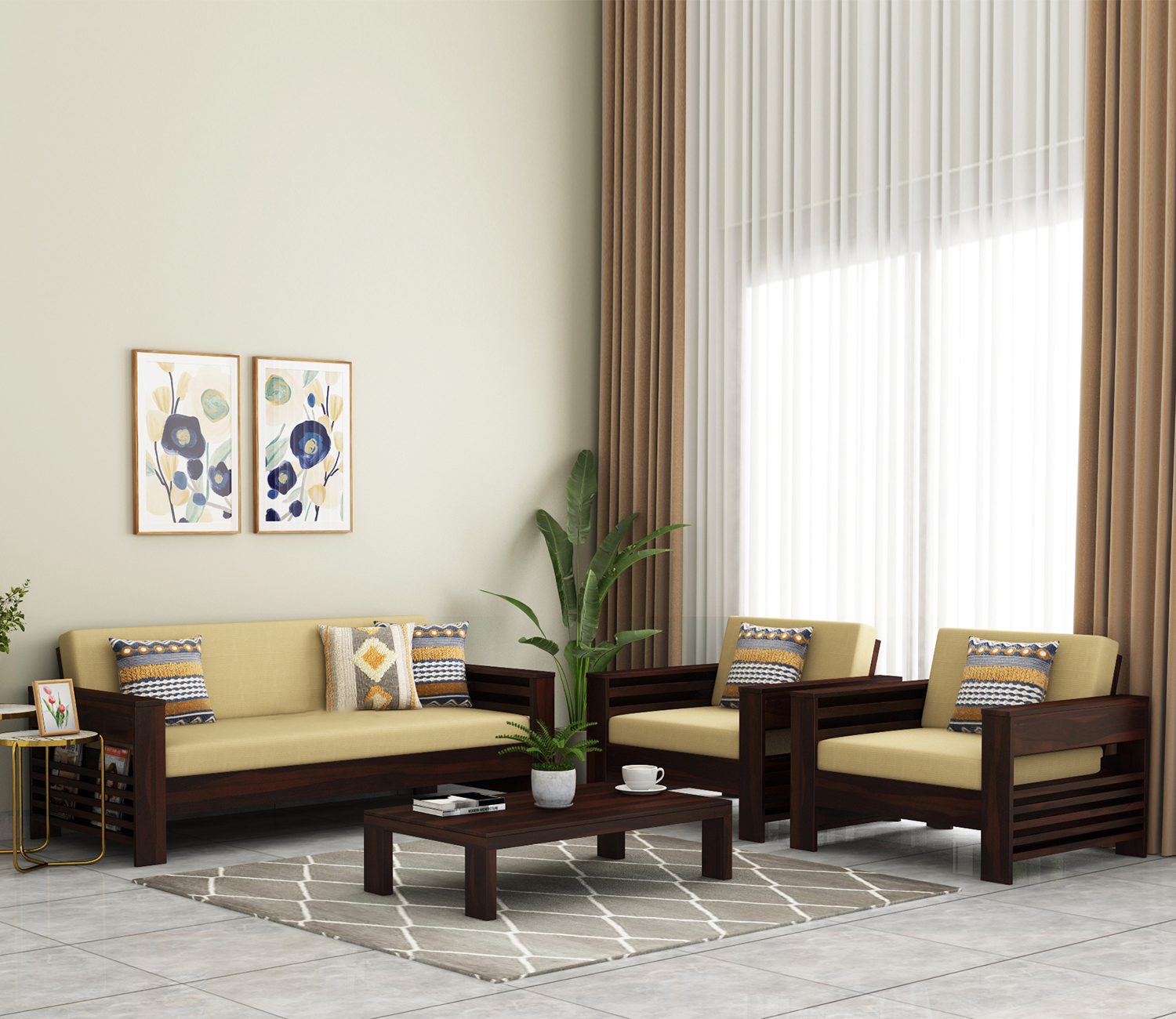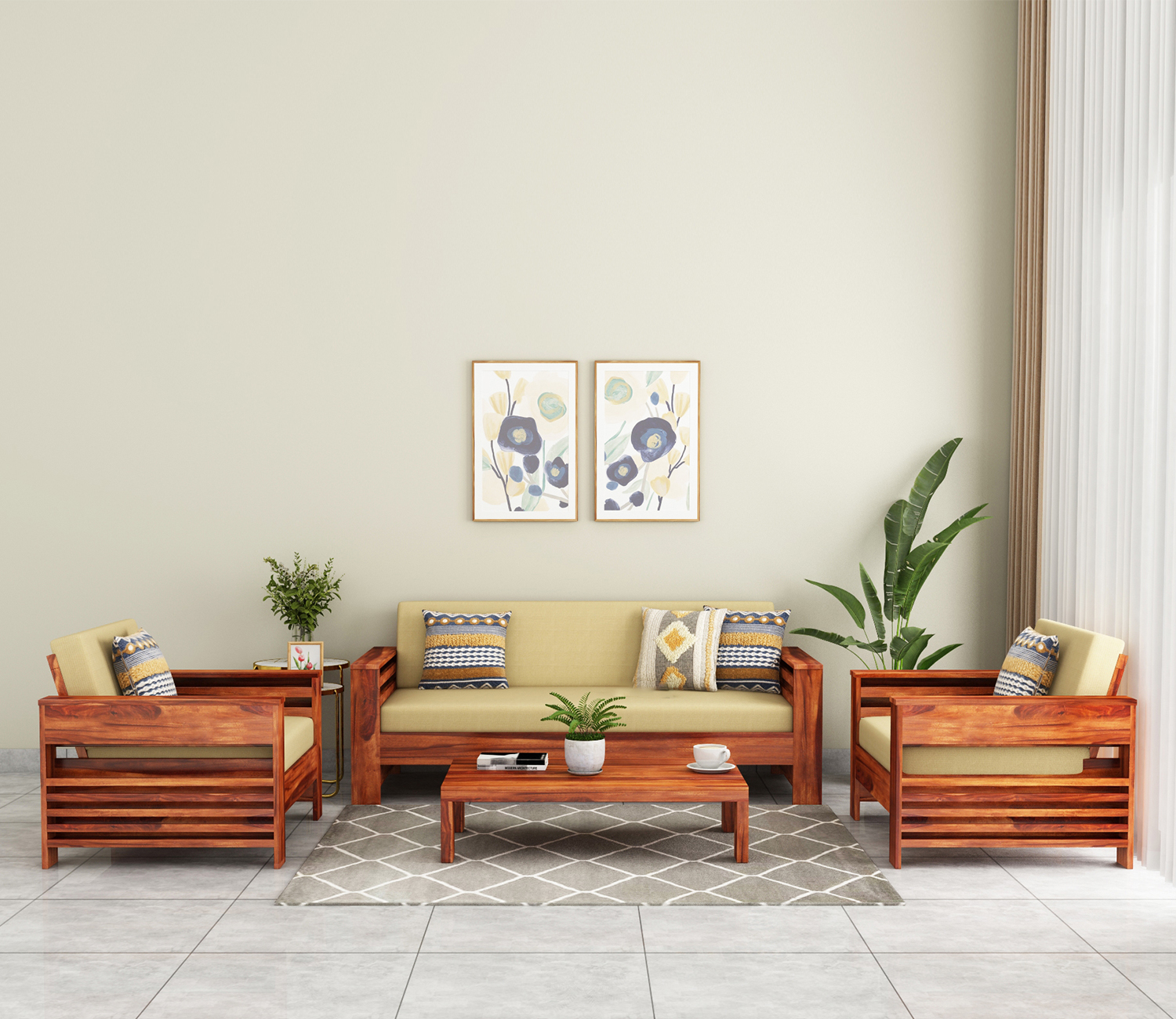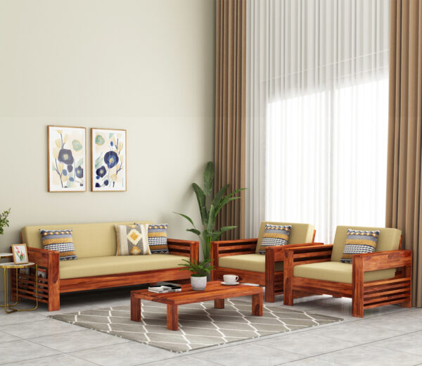 Transform your home with the elegance of solid wood – bring home the Norvanthos 5 Seater Wooden Sofa Set today!