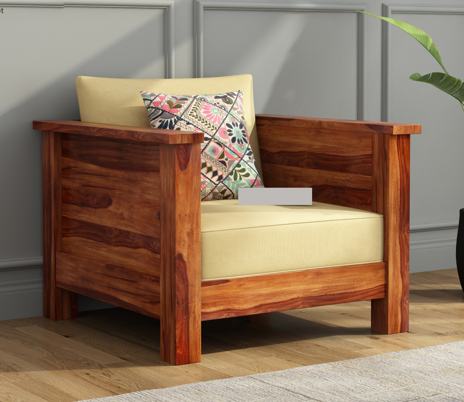 Transform your home with the elegance of solid wood – bring home the Olyvaris 1 Seater Wooden Sofa Set today!