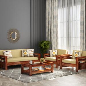 Transform your home with the elegance of solid wood – bring home the Pythoran 5 Seater Wooden Sofa Set today!