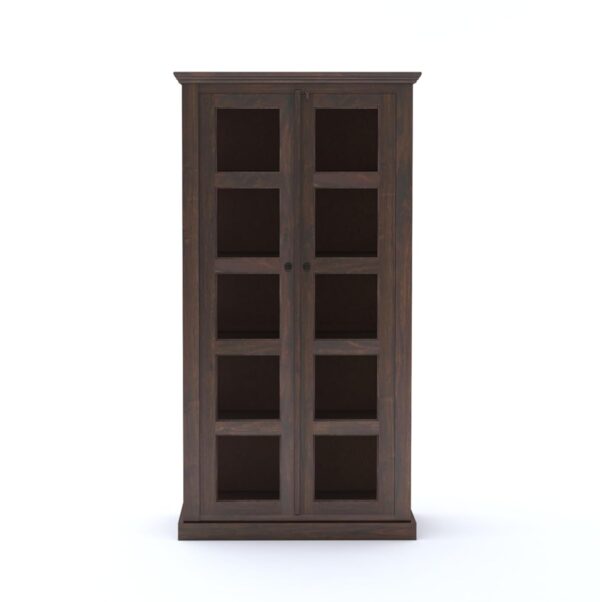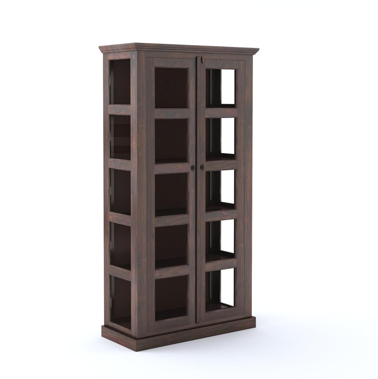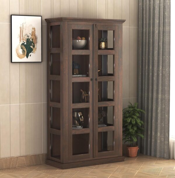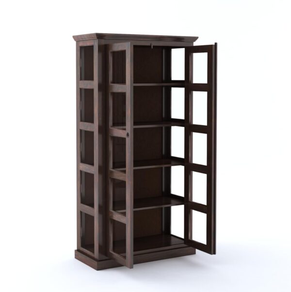 Add a touch of sophistication to your home or office with this elegantly designed Sheesham Wood Bookshelf with Glass, finished in a rich Walnut tone. Crafted from premium quality Sheesham wood, this bookshelf combines natural durability with refined aesthetics. The addition of glass-paneled doors not only protects your books and décor from dust but also offers a stylish display solution that blends seamlessly with modern and classic interiors.