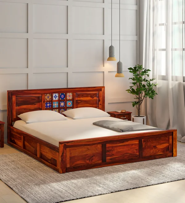 Thravinor Sheesham Wood King Size Bed – Elegant & Space-Saving Design